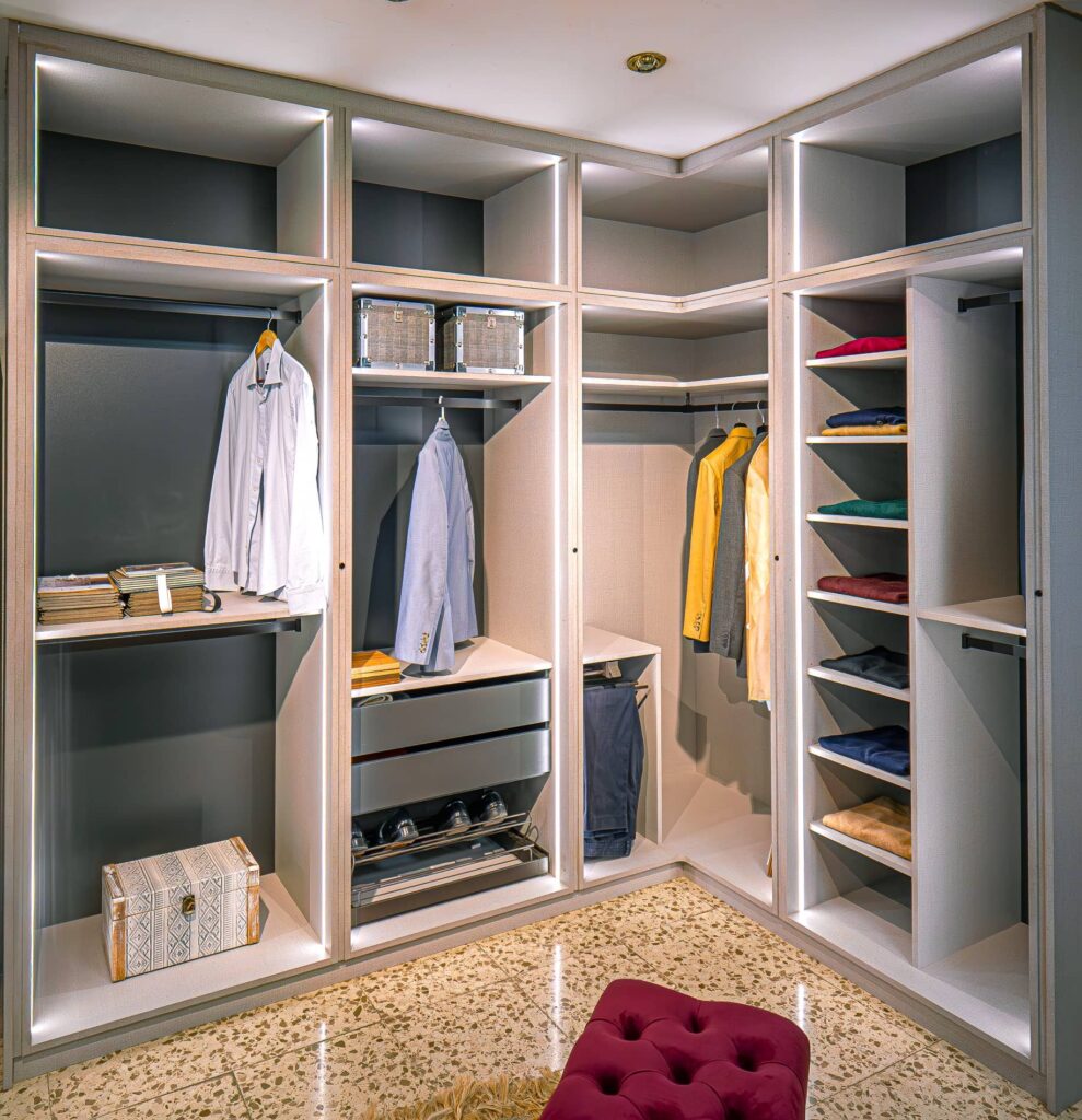 En la sección central dedicada a muebles de dormitorio, tenemos un armario de muestra donde te mostraremos todas las opciones que ofrecemos en armarios a medida. Además, podemos asesorarte sobre otros muebles de dormitorio y ayudarte a elegir los colores que mejor se adapten a tu estilo.